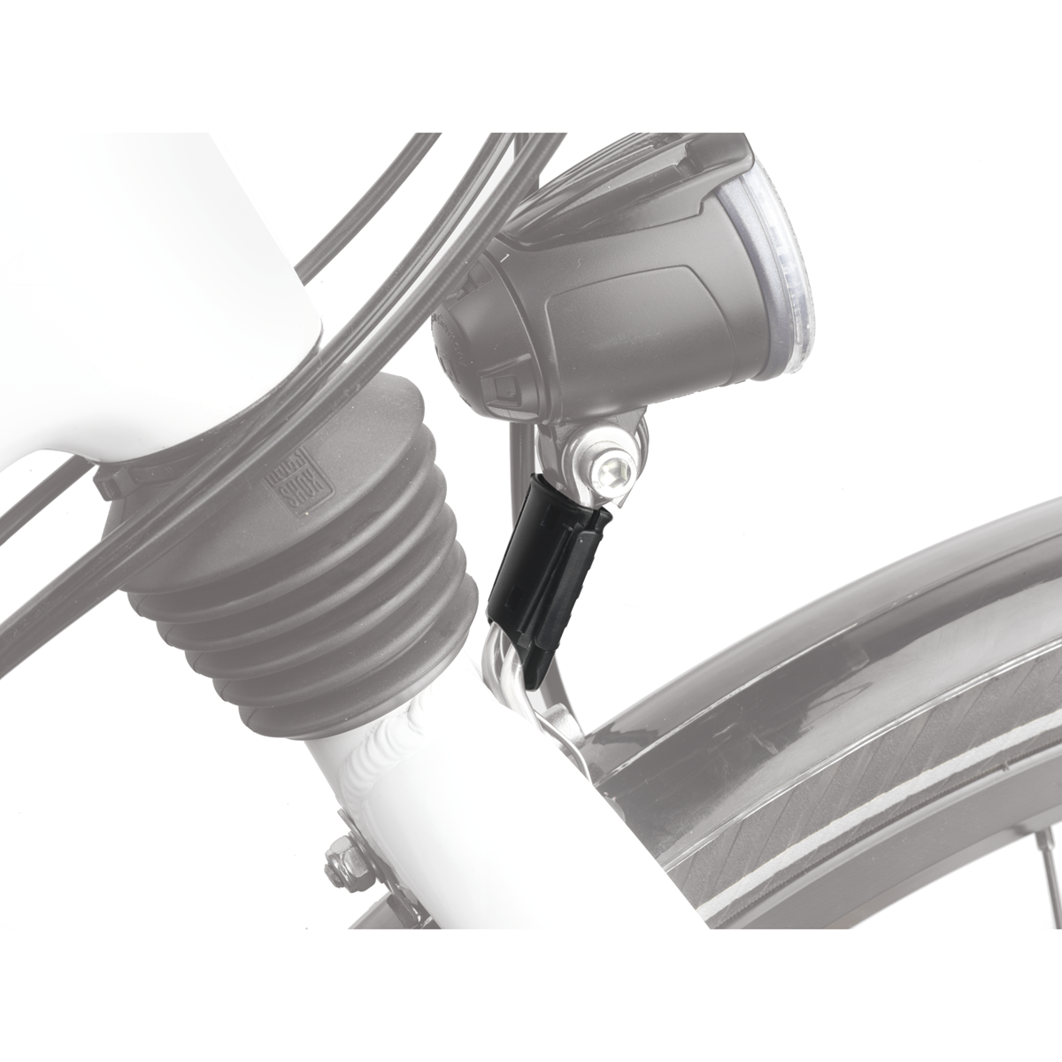 Front light and holder made of stainless steel - both look very elegant. A perfect design, if only there would be no cables! The solution is a cable guide for the Cyo holder made of two small plastic shells. Simply press them together and the cables run through the exactly fitting cable guide.