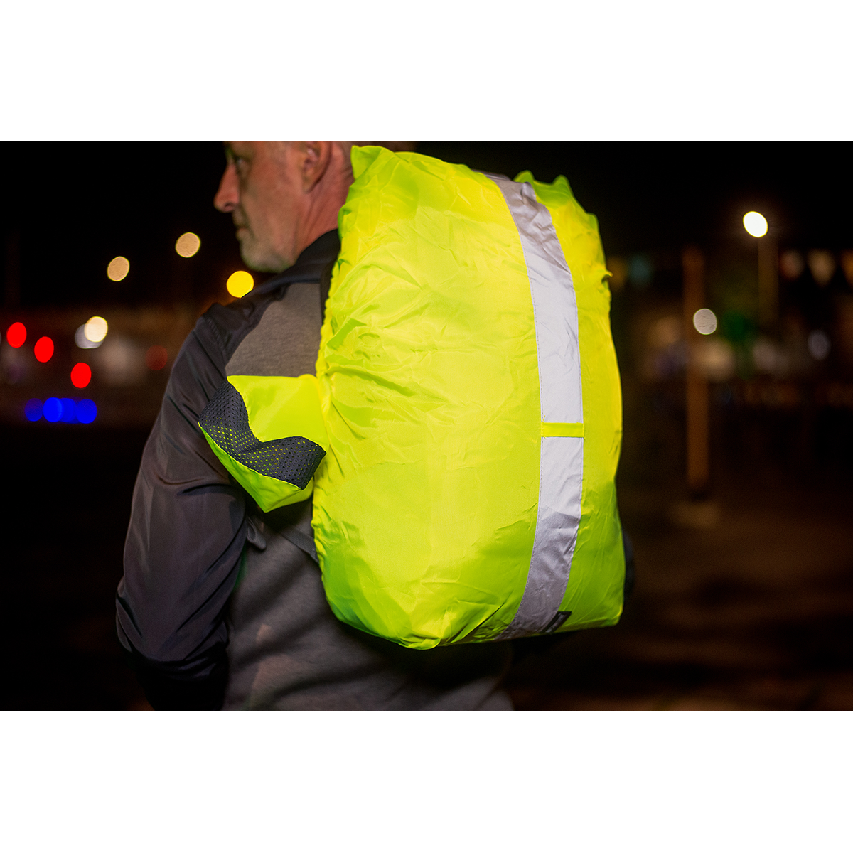 The Bag Cover by WOWOW protects you and your backpack. The Bag Cover quickly transforms your backpack into a reflective safety element and increases your visibility on your way to work or school when it is hit by light.